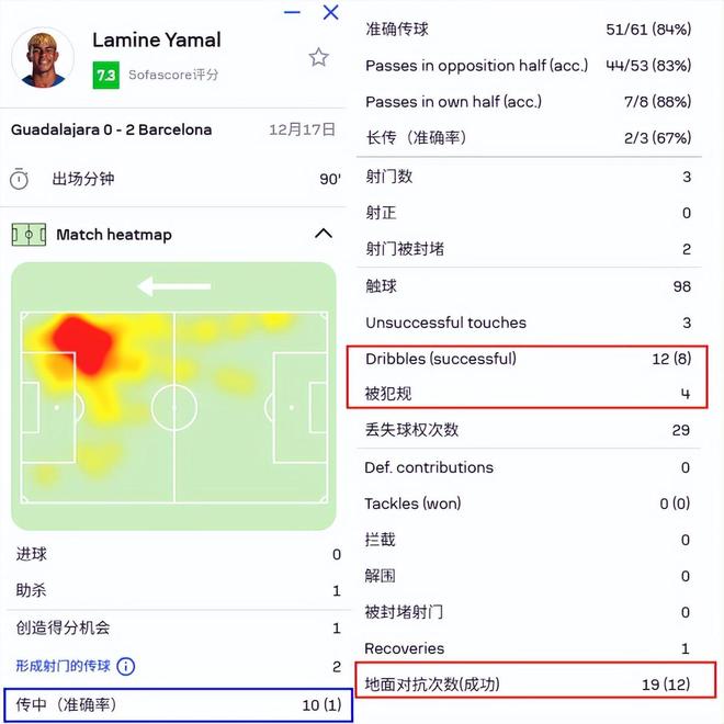 毕竟对手也知道,亚马尔是最有威胁的那个人,防守注意力都在亚马尔身上,甚至对他有4次犯规。德容作为中场,他是没有能力创造空间的,于是也很难帮助到亚马尔。
